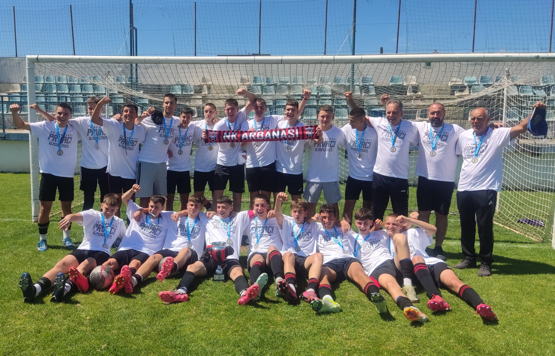 Kadeti Arbanasa prvaci su Druge Dalmatinske nogometne lige. Nakon dvoboja 8. kola drugog kruga u kojem su na Stanovima uvjerljivo pobijedili Zagoru, primili su pehar i medalje namijenjene prvacima. Svojim dolaskom ovu svečanost uveličao je Ivan Prtajin, igrač njemačkog bundesligaša Union Berlina, koji je u mlađim kategorijama nosio dres Arbanasa. A nakon same dodjele u ŠN NK Arbanasi prigodnim slavljem odlučili su se uveličati mladim nogometašima i njihovim trenerima ovaj trenutak na kraju fantastične sezone. Koja, važno je naglasiti, nije još završena jer se kadeti i juniori bore za ulazak u viši rang, a za to im valja odigrati još jedno kolo. Trenutačno na kombiniranoj ljestvici Arbanasi imaju tri boda prednosti ispred Vala koji je u konkurenciji kadeta ovoga vikenda na svom travnjaku poražen od Slavena iz Trogira. Juniori obje momčadi ovog su vikenda osvojili po trobod. U posljednjem kolu Arbanasi gostuju upravo kod Slavena, a Val ide na noge Vodicama. Nadajmo se da će se slavlje sa Stanova, sljedećeg vikenda preseliti u Trogir gdje "crveno-crni" svim srcem žele trasirati put u Prvu Dalmatinsku nogometnu ligu.